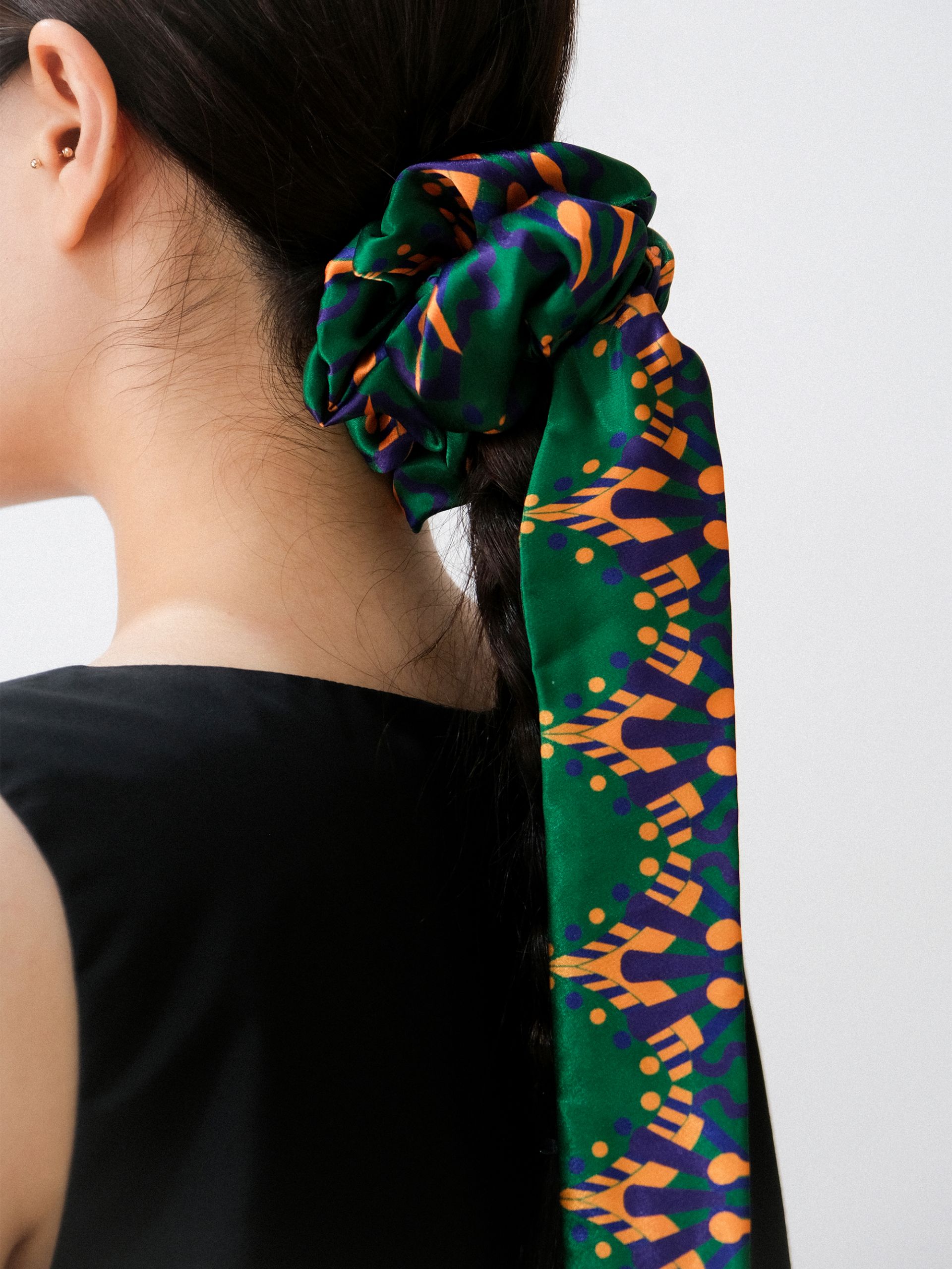 - 스크런치 단독으로, 댕기를 매듭지어 늘어뜨리는 형태로, 목에 둘러 스카프처럼, 가방끈 매듭 등 다양하게 연출 가능한 아이템입니다.