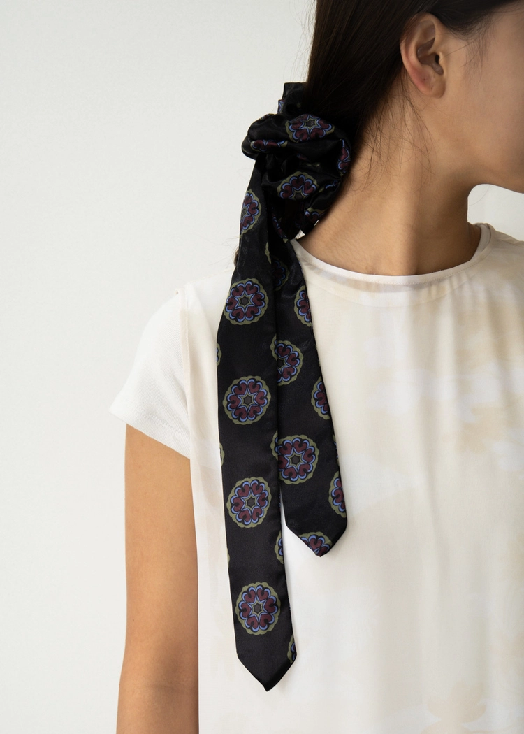 - 스크런치 단독으로, 댕기를 매듭지어 늘어뜨리는 형태로, 목에 둘러 스카프처럼, 가방끈 매듭 등 다양하게 연출 가능한 아이템입니다.