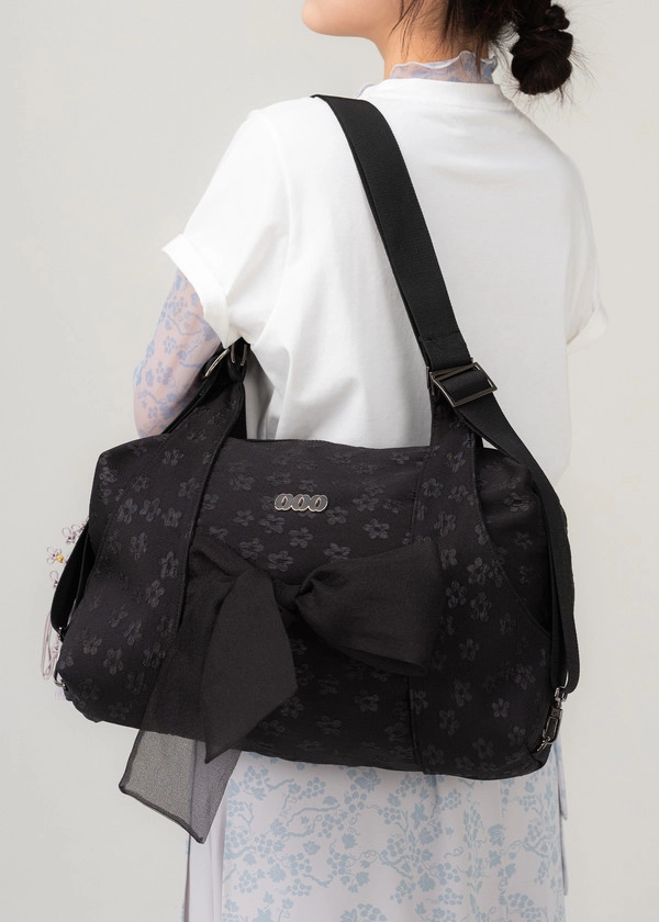 - 은은한 광택이 고급스러운 공단 소재에 오우르 P9 데인티모란 패턴을 덧입힌 댕기 스크런치입니다.