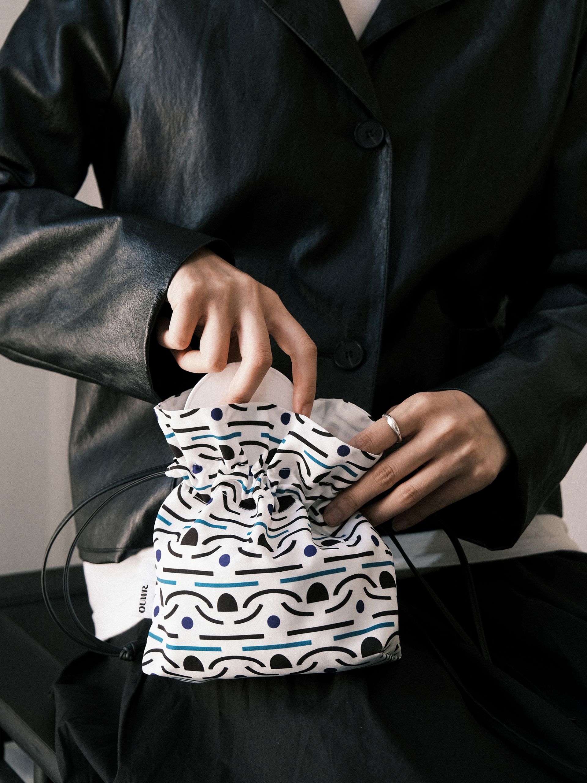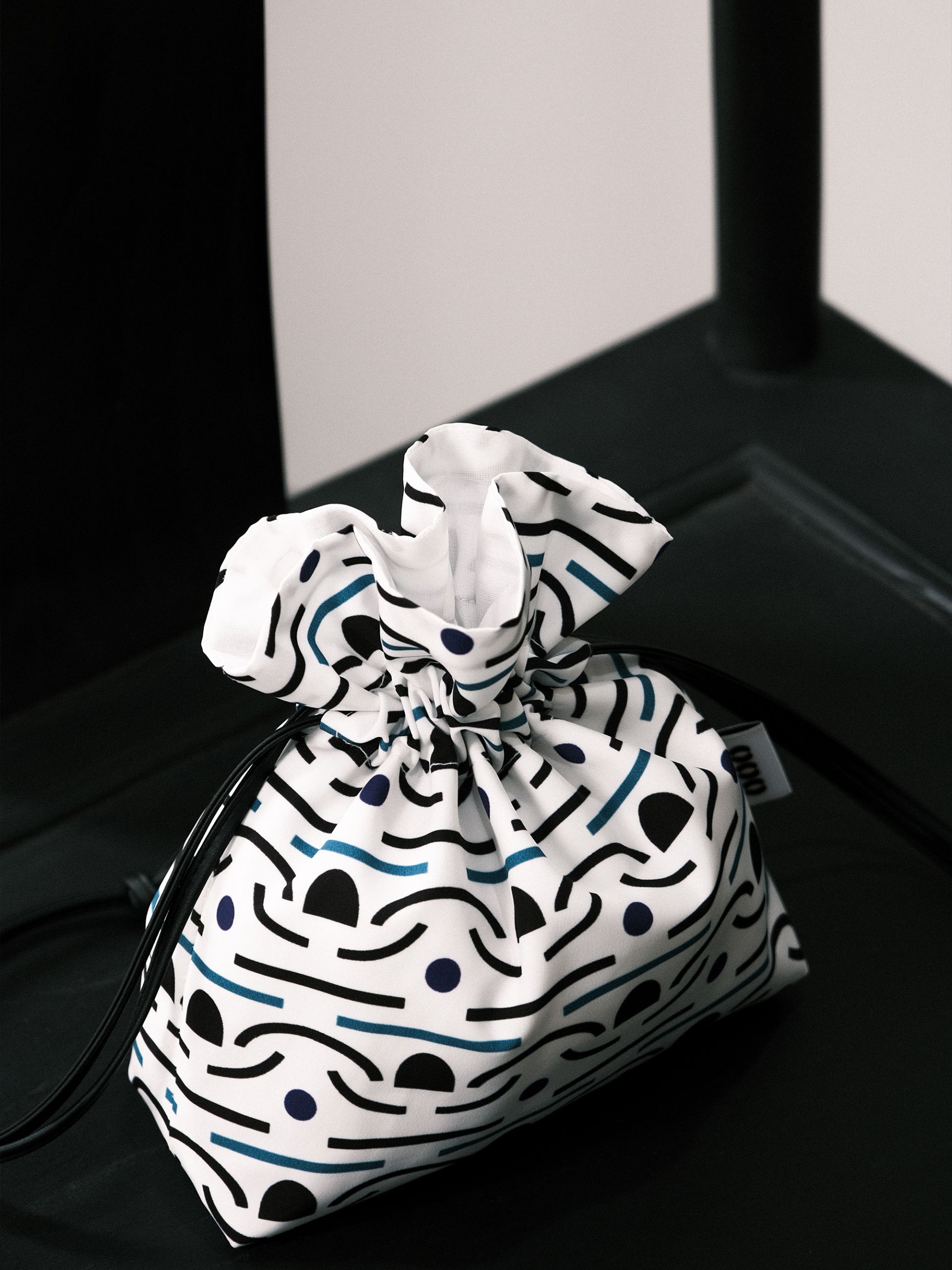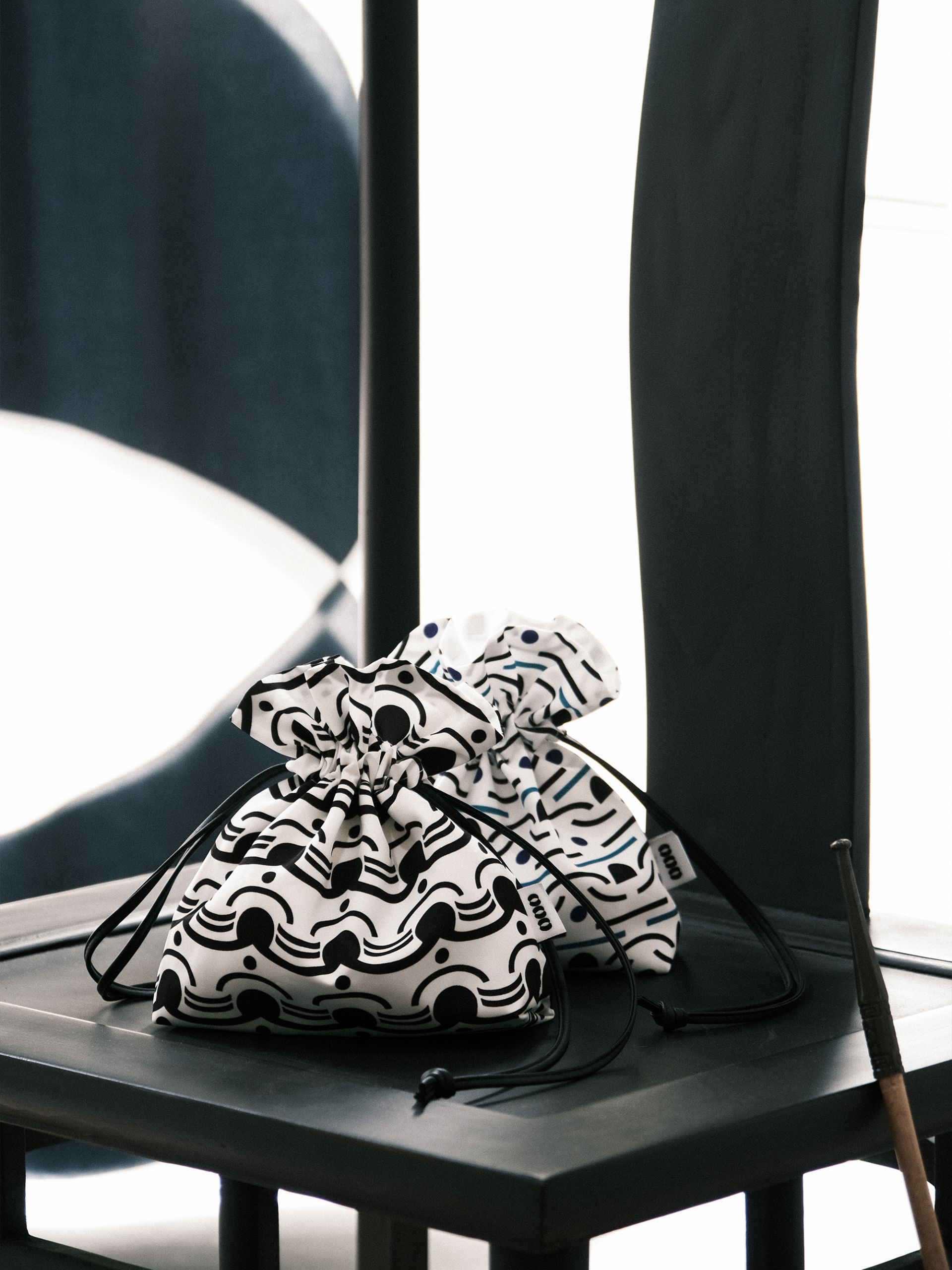 - 복을 불러들이기 위해 차고 다니는 복주머니에서 영감을 받아 디자인된 복 파우치에 오우르 P6 담 패턴을 담아 제작되었습니다.