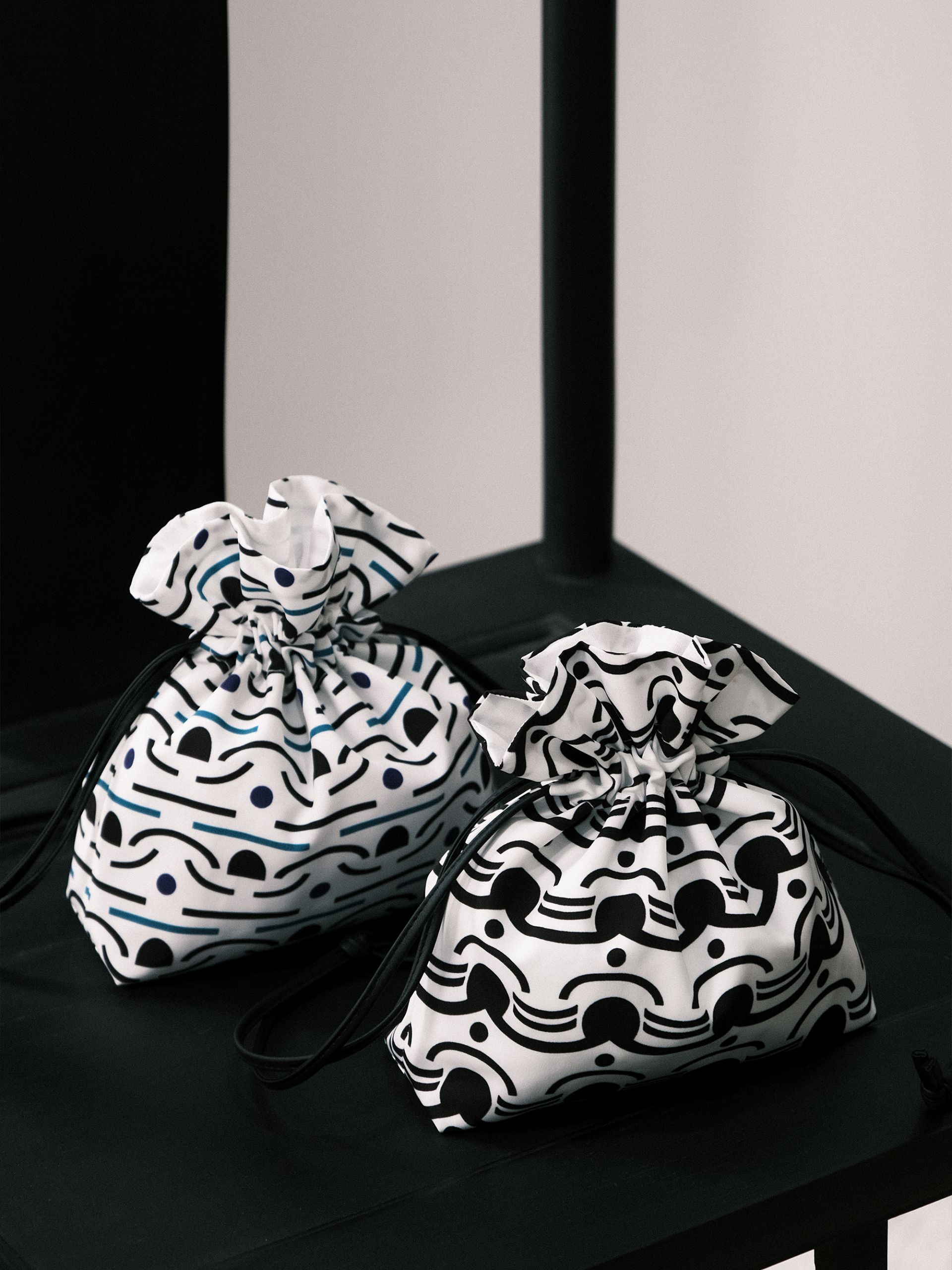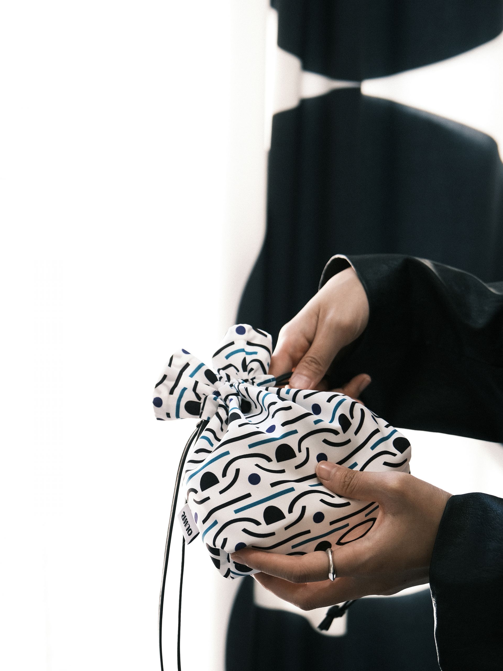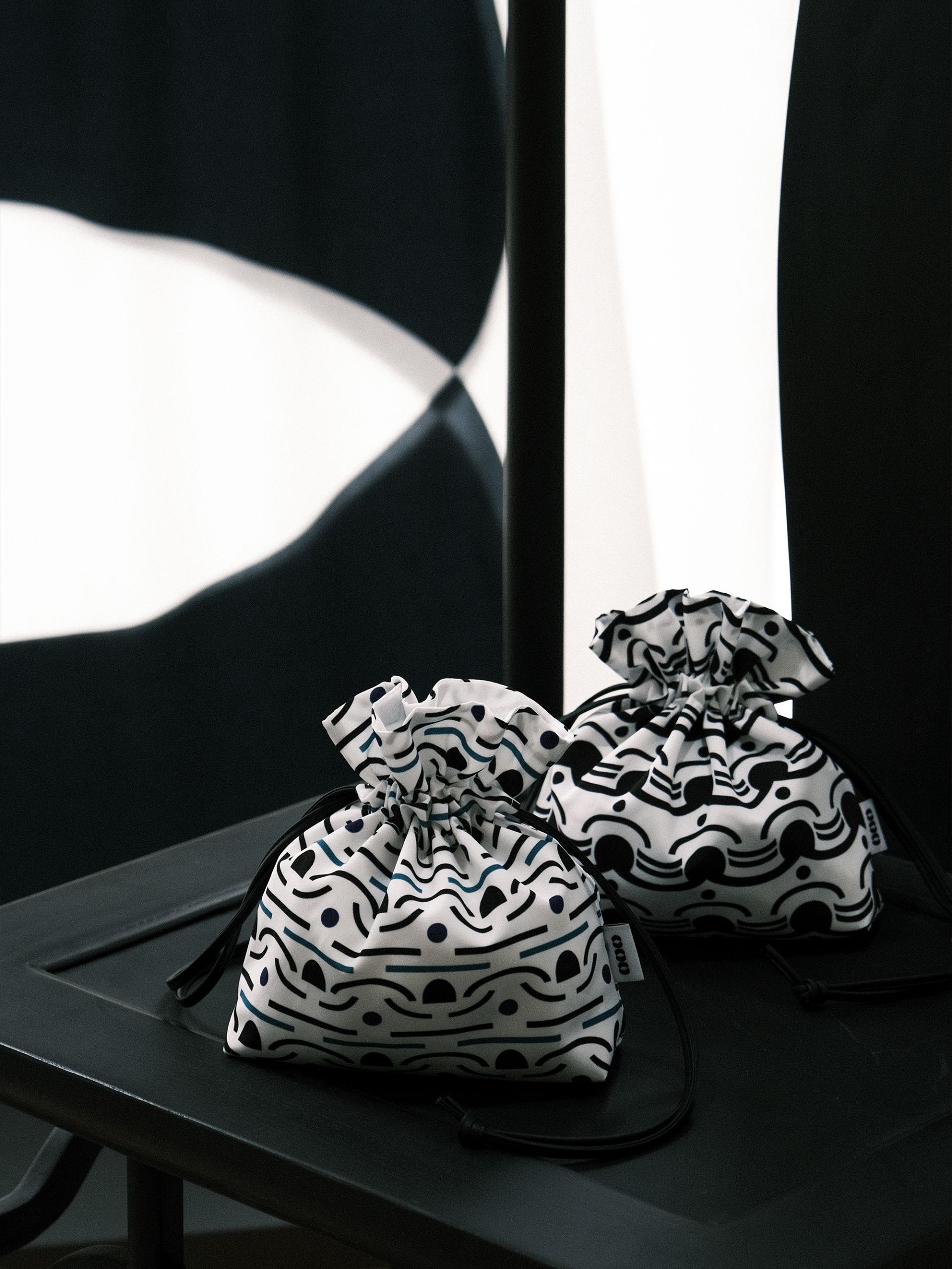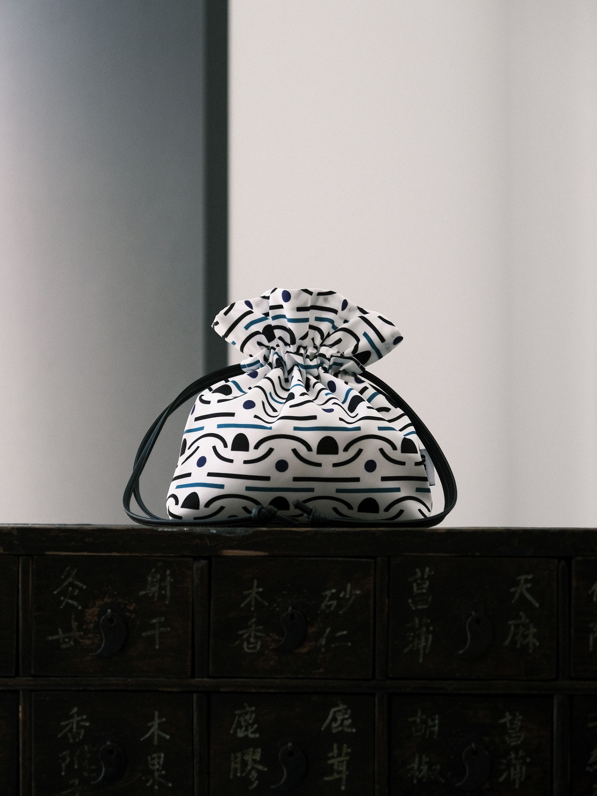 - 복을 불러들이기 위해 차고 다니는 복주머니에서 영감을 받아 디자인된 복 파우치에 오우르 P6 담 패턴을 담아 제작되었습니다.