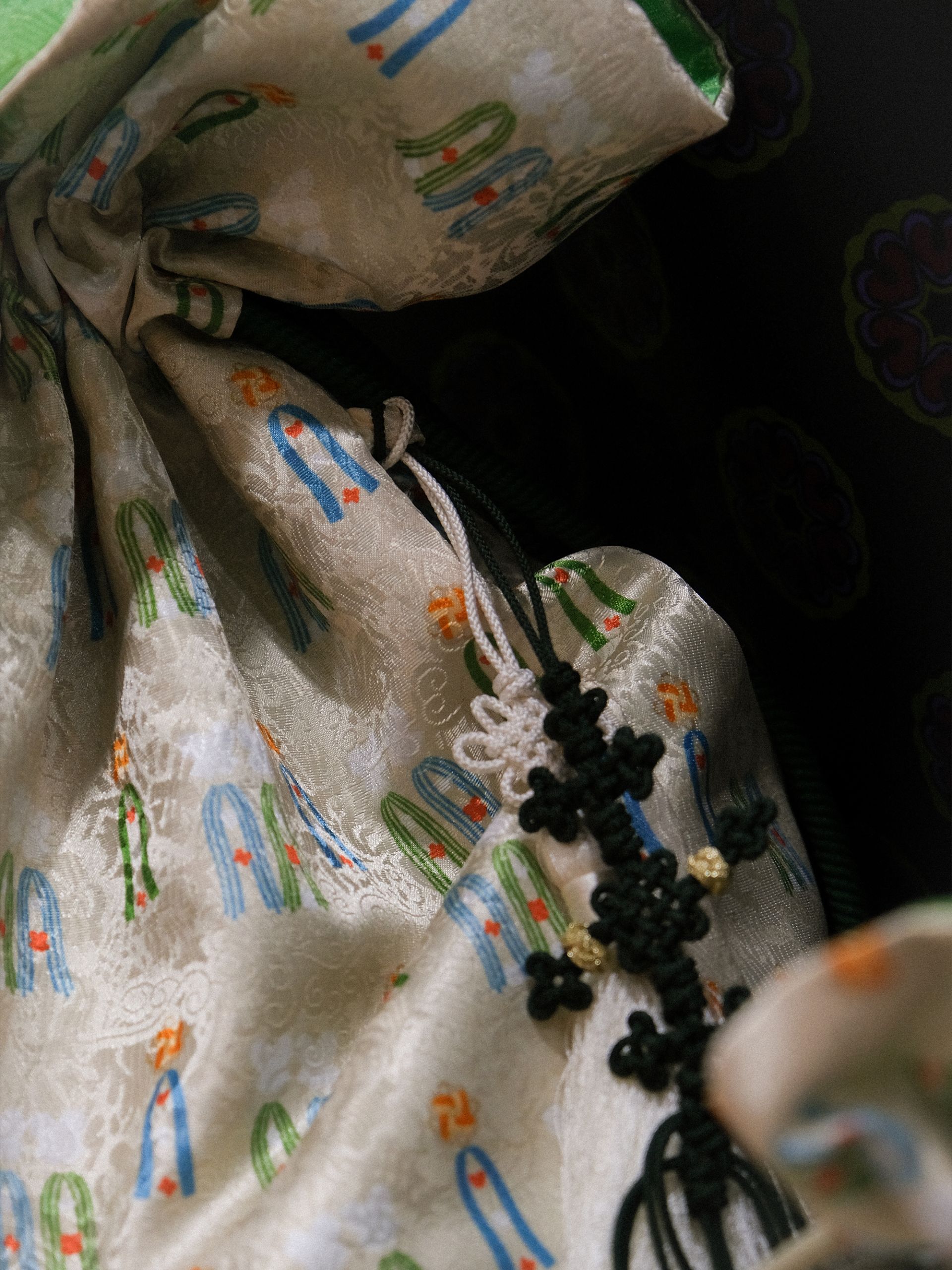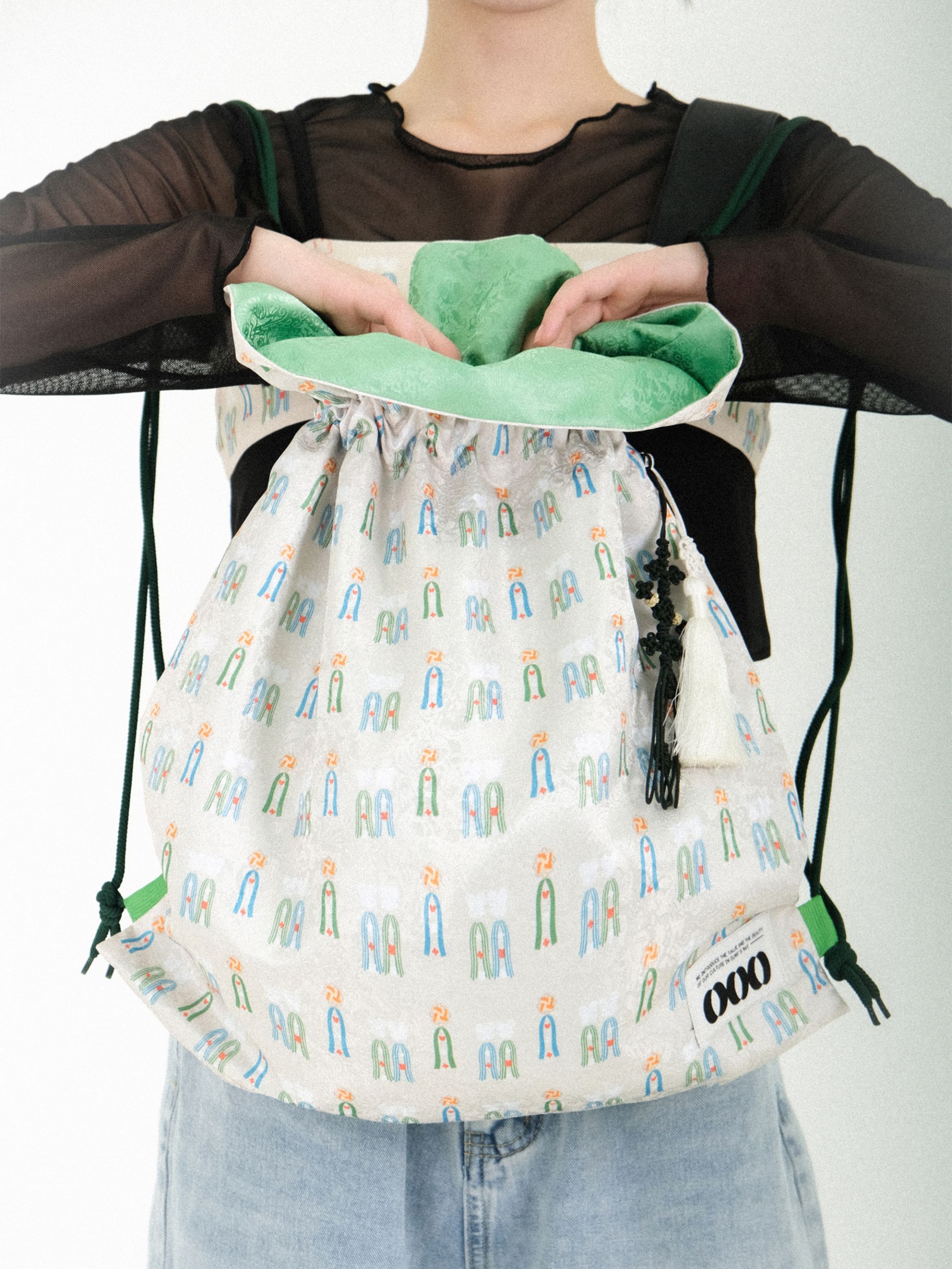 - 복을 불러들이기 위해 차고 다니는 복주머니에서 영감을 받은 복 백팩에 오우르 [P10 호박나비노리개] 패턴을 담았습니다.