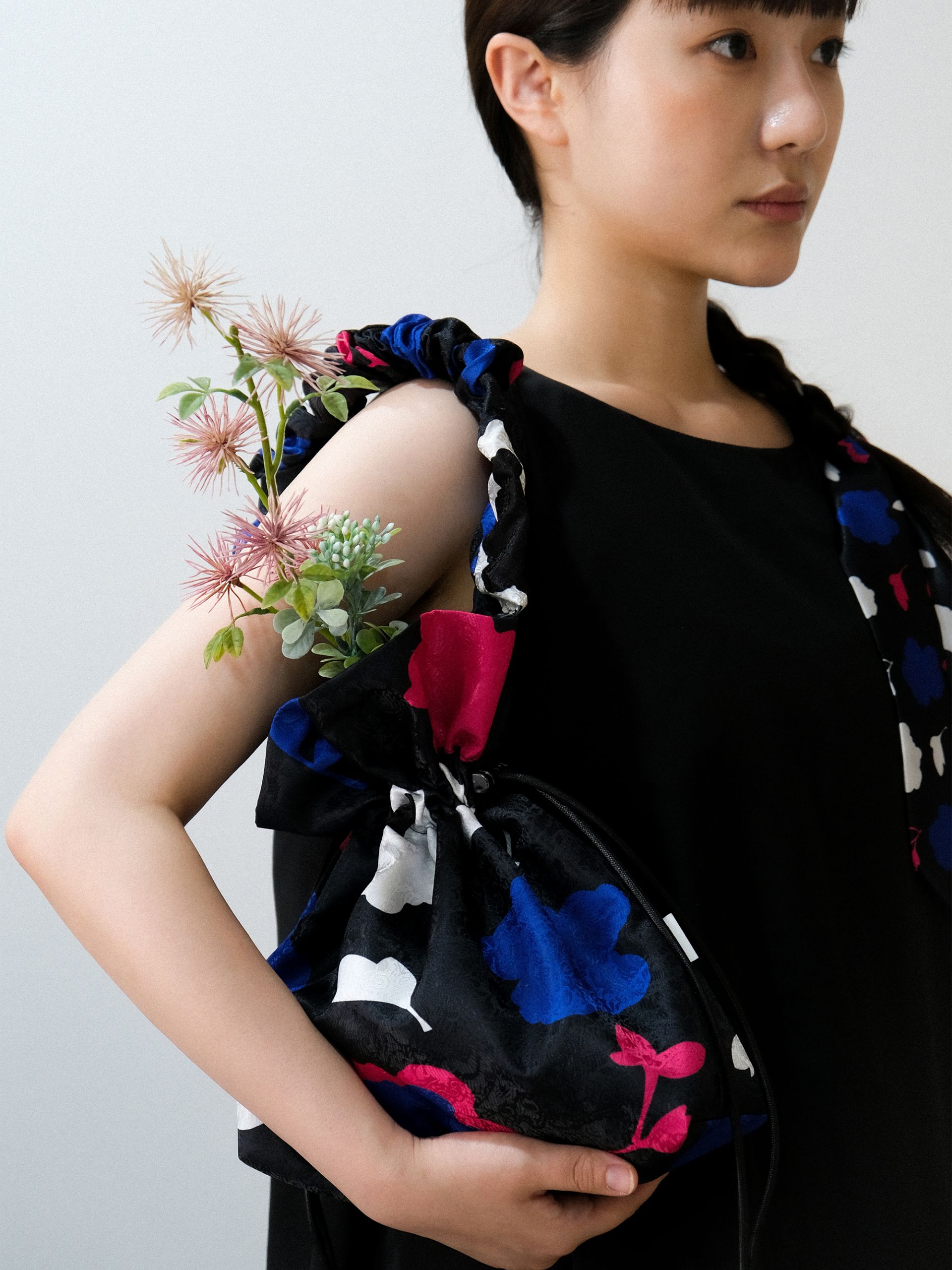 - 전통적인 복주머니 형태에 손잡이 셔링으로 편안하면서 스타일리쉬한 무드를 더합니다.