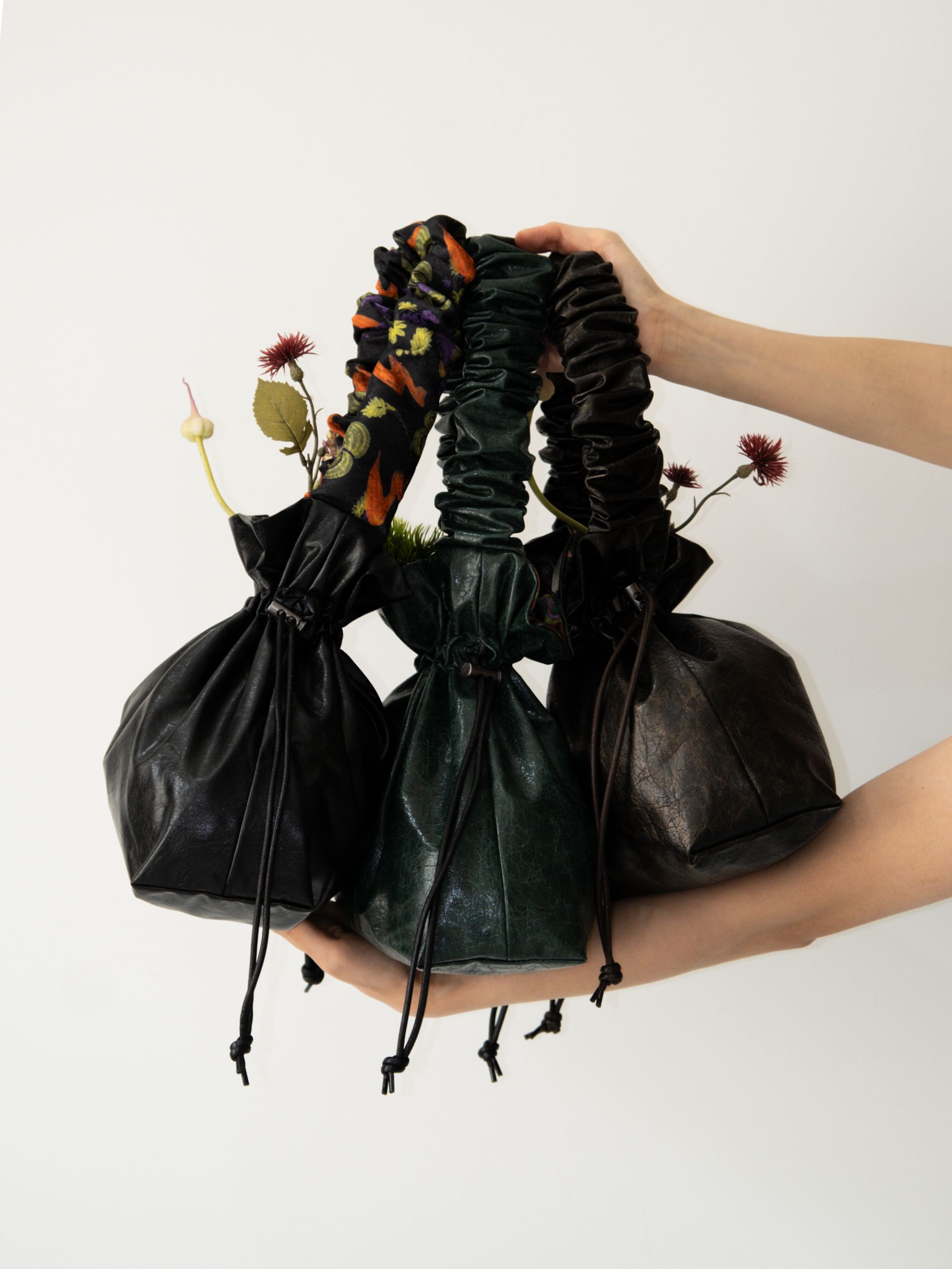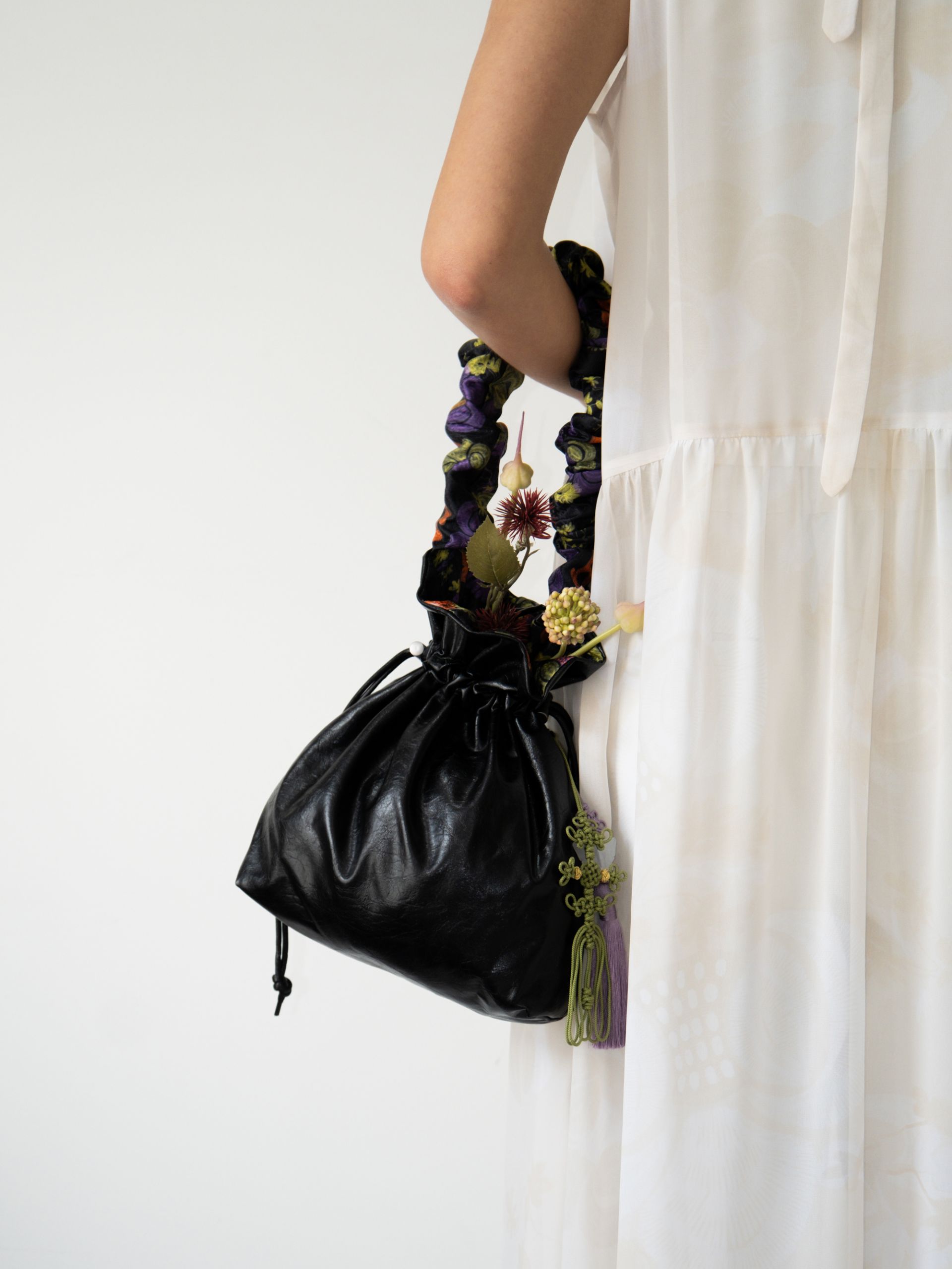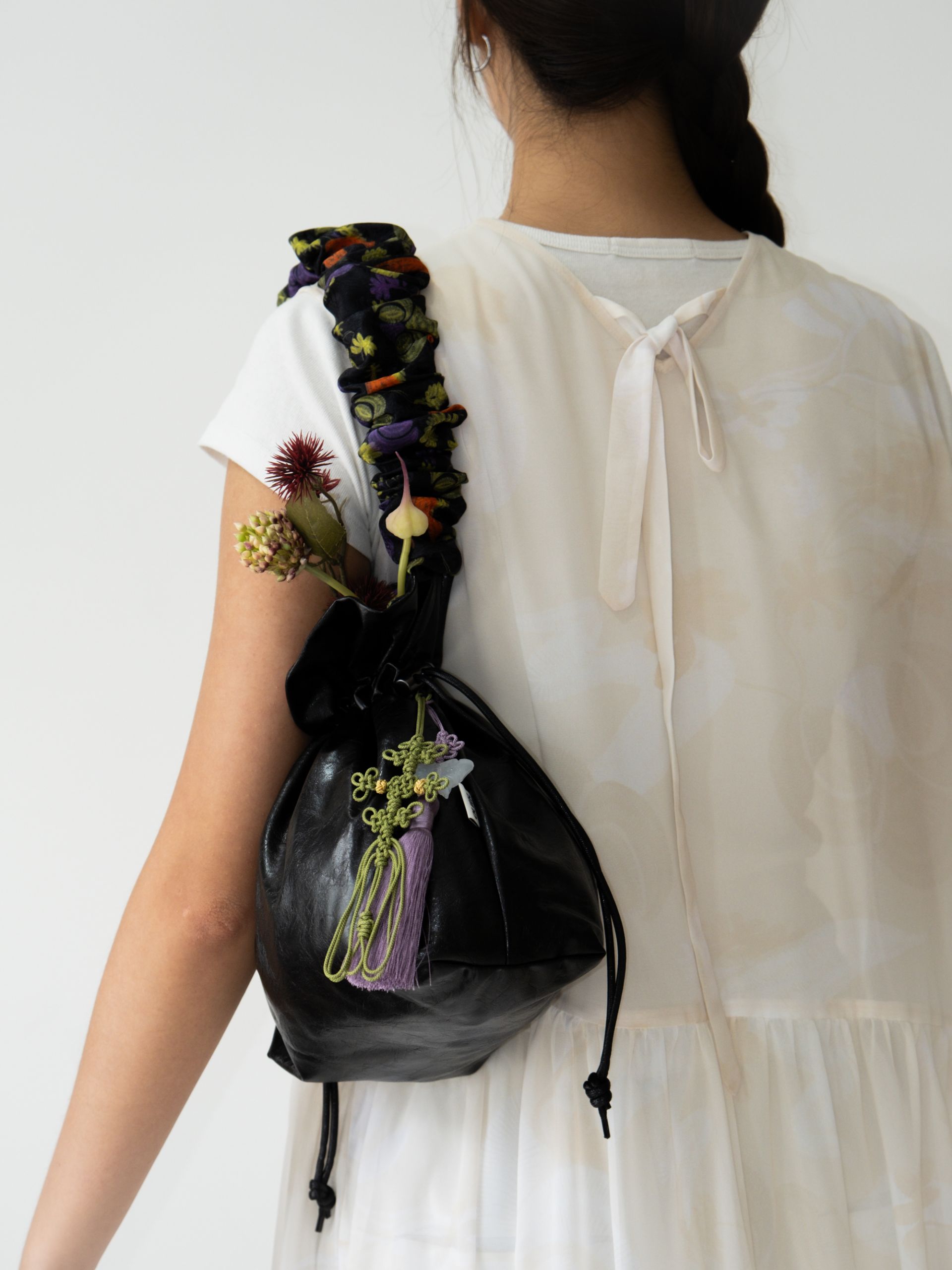 - 전통적인 복주머니 형태에 손잡이 셔링으로 편안하면서 스타일리쉬한 무드를 더합니다.