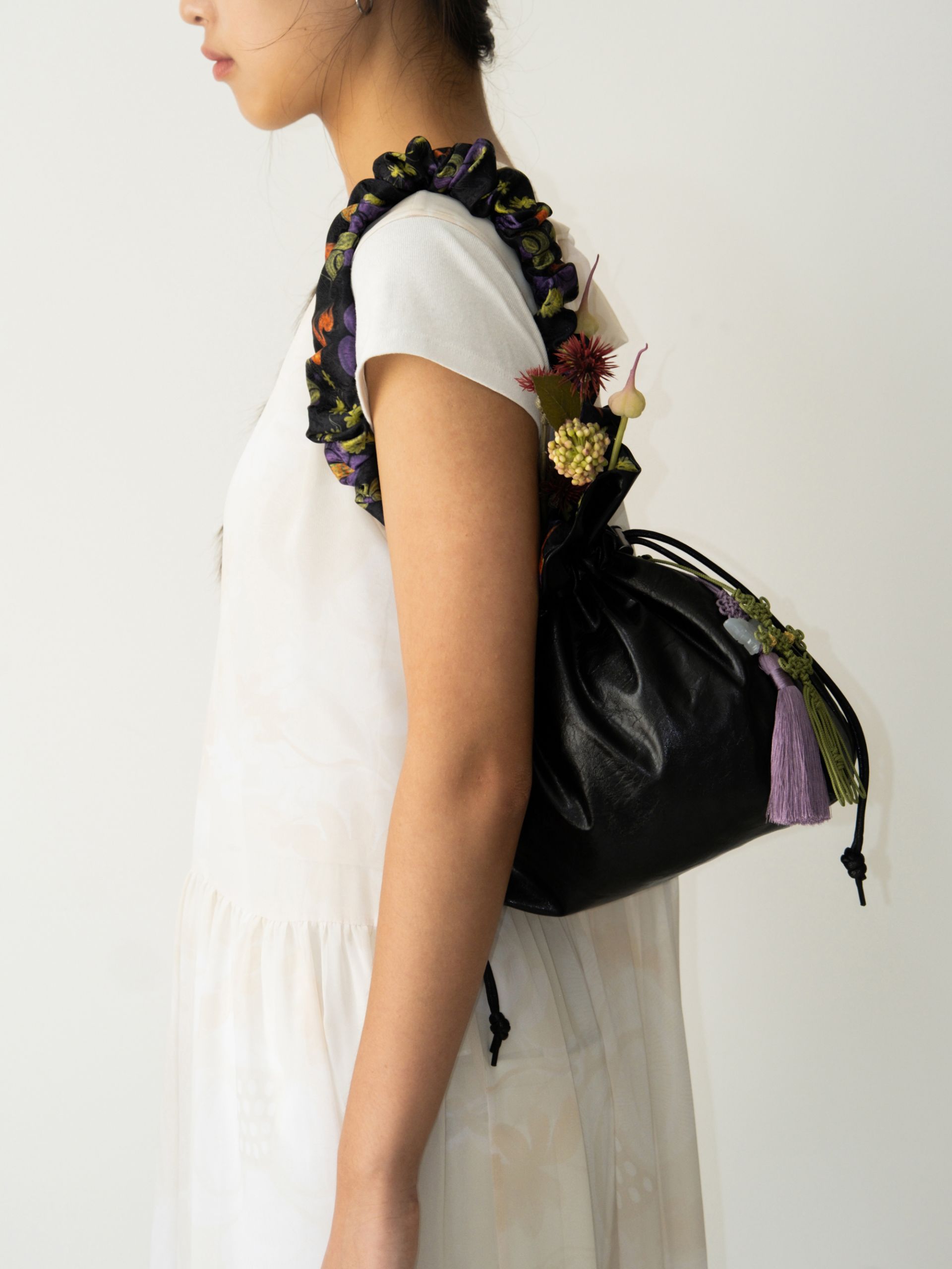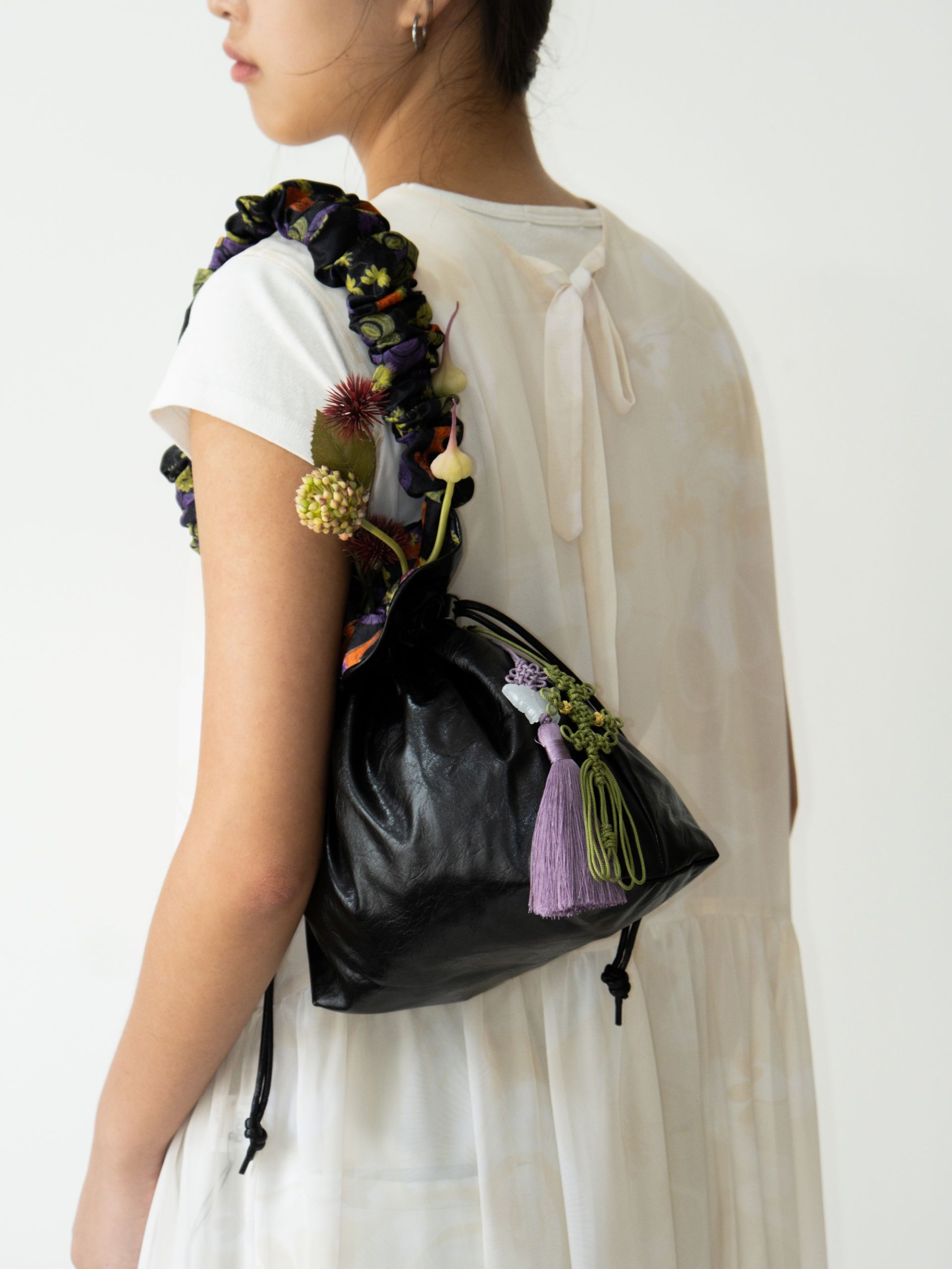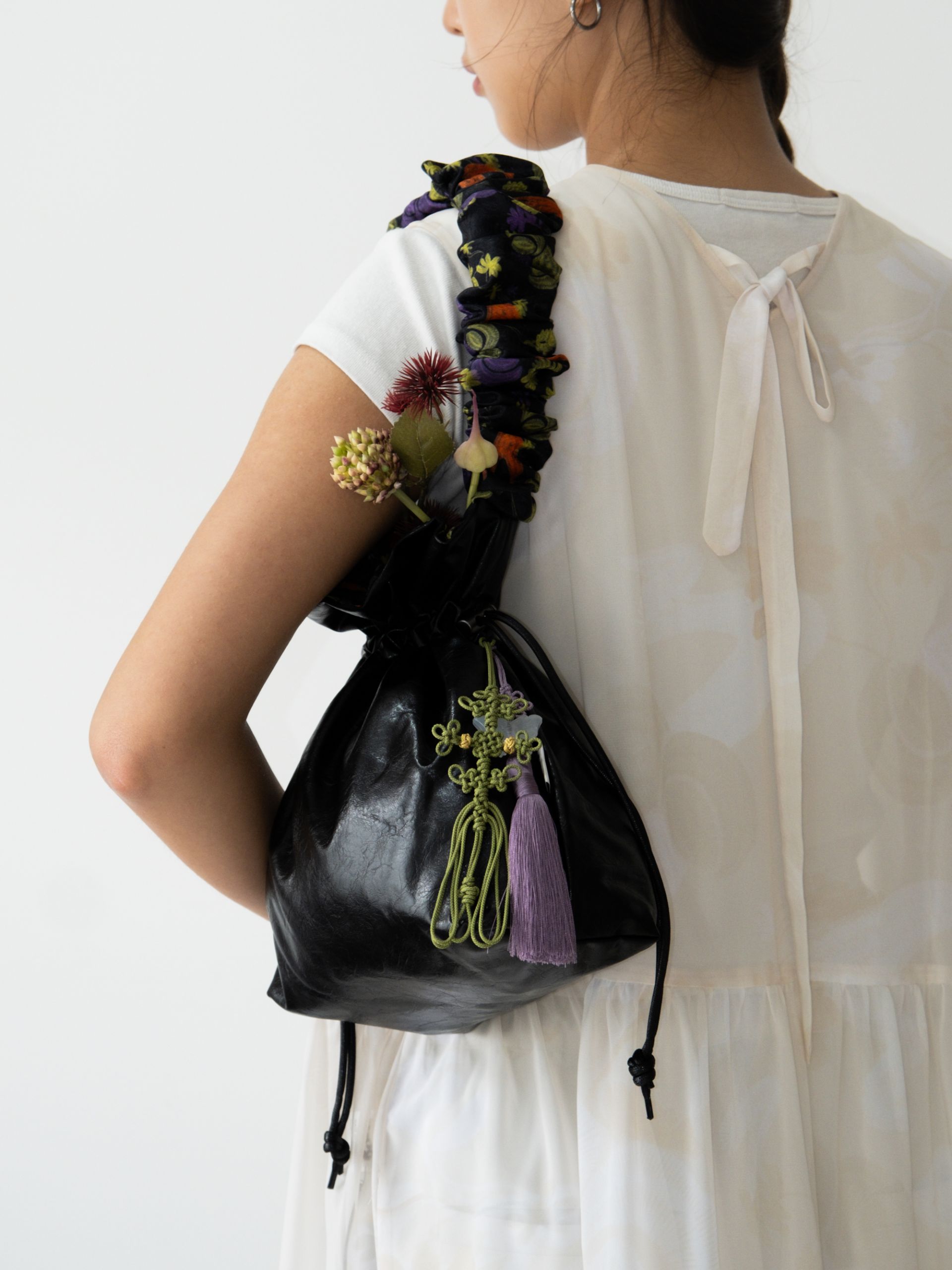 - 전통적인 복주머니 형태에 손잡이 셔링으로 편안하면서 스타일리쉬한 무드를 더합니다.