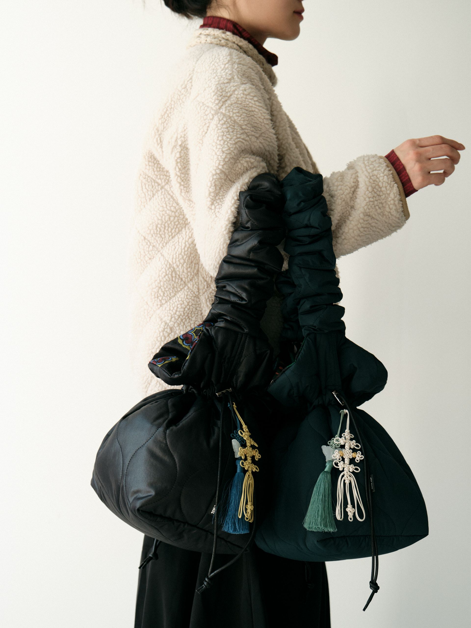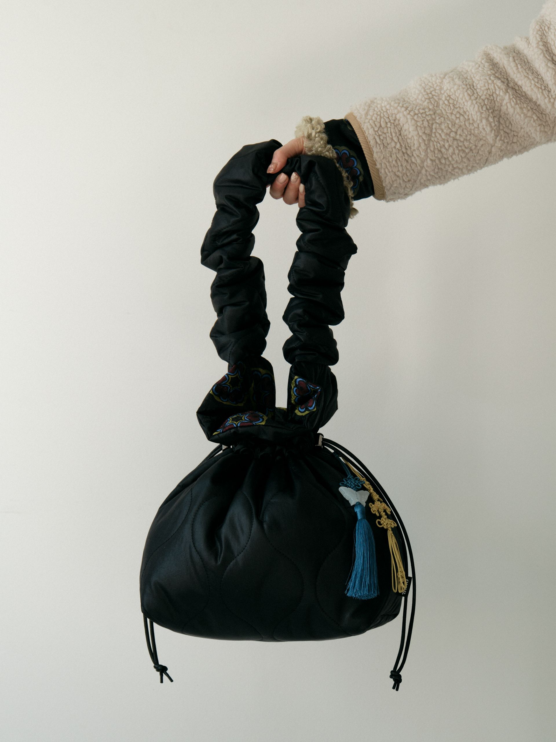 - 전통적인 복주머니 형태에 손잡이 셔링으로 편안하면서 스타일리쉬한 무드를 더합니다.
