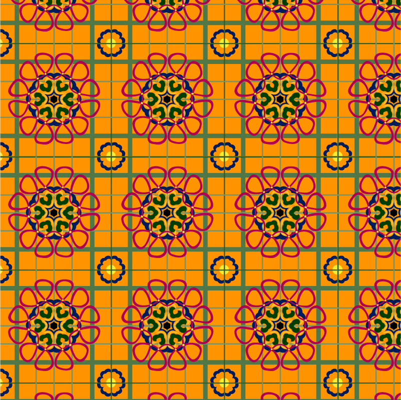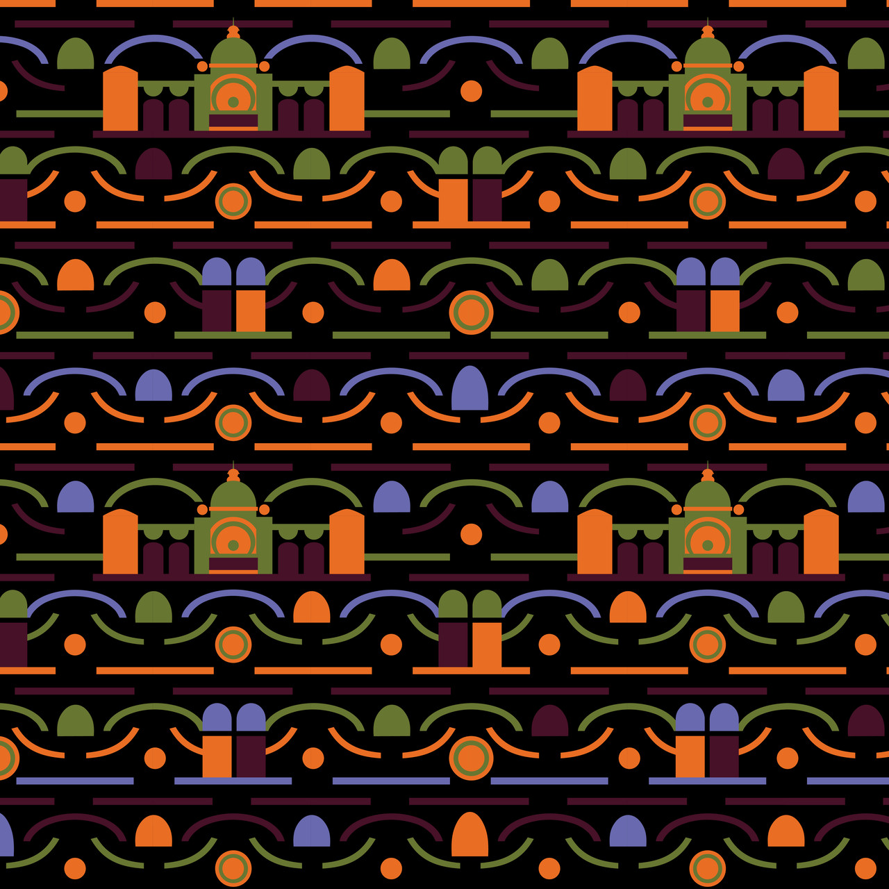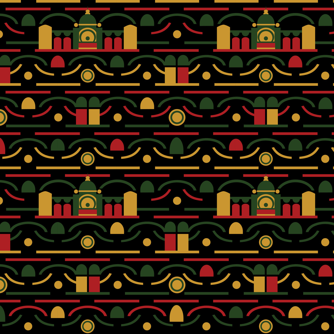 구름꽃 그리드는 오우르의 초창기 패턴이자 단청을 모티브로 한 P3: 구름꽃(Guleum Ggot)에서 시작됩니다. 본래 단청은 한국 건축물의 천장에 그려넣던 무늬로 건물의 요소 중 청·적·황·백·흑색의 다섯 가지 오방색을 기본으로 사용하여 가장 화려하고 색이 많은 부분입니다. 지붕 아래 숨겨져 있던 단청의 화려함을‘구름 속에서 피어난 꽃’의 형태로 재해석한 디자인입니다. 서울역 로비 중앙 천장을 밝히는 스테인드글라스는 경성역 시절 돔 상부의 천창을 통해 들어오는 햇빛을 받아 다채로운 빛을 품어냈던 것으로 알려져 있습니다. 한국전쟁 이후에는 태극무늬, 봉황, 무궁화 등을 거쳐 현재는 태극문양을 중심으로 강강술래를 형상화한 문양으로 이어지고 있습니다. 화려한 색감과 조형미를 지닌 단청과 스테인드글라스의 결을 오우르만의 시각으로 조합한 구름꽃 그리드는 유려한 곡선과 생동감 있는 색감이 어우러진, 빛의 흐름 같은 다채로운 움직임을 담아낸 패턴입니다.