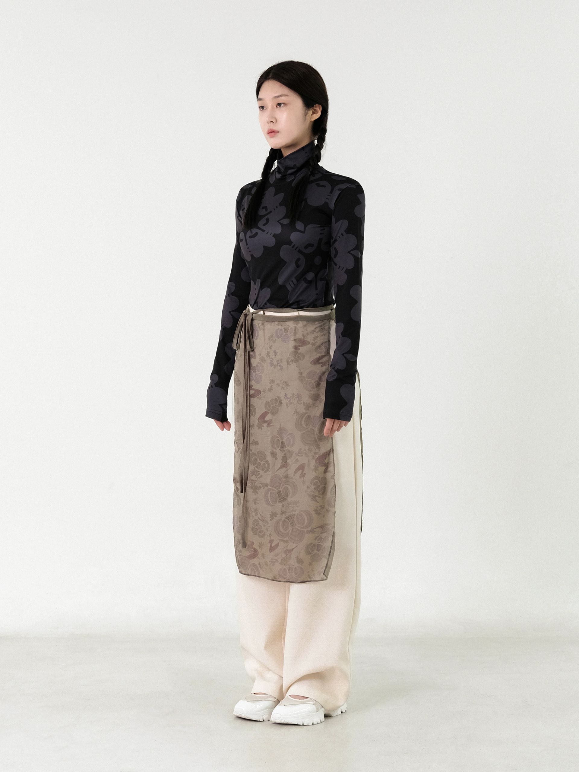 - 랩 스커트 양 옆 스트랩을 조절해 개개인의 체형에 맞게 착용할 수 있습니다.