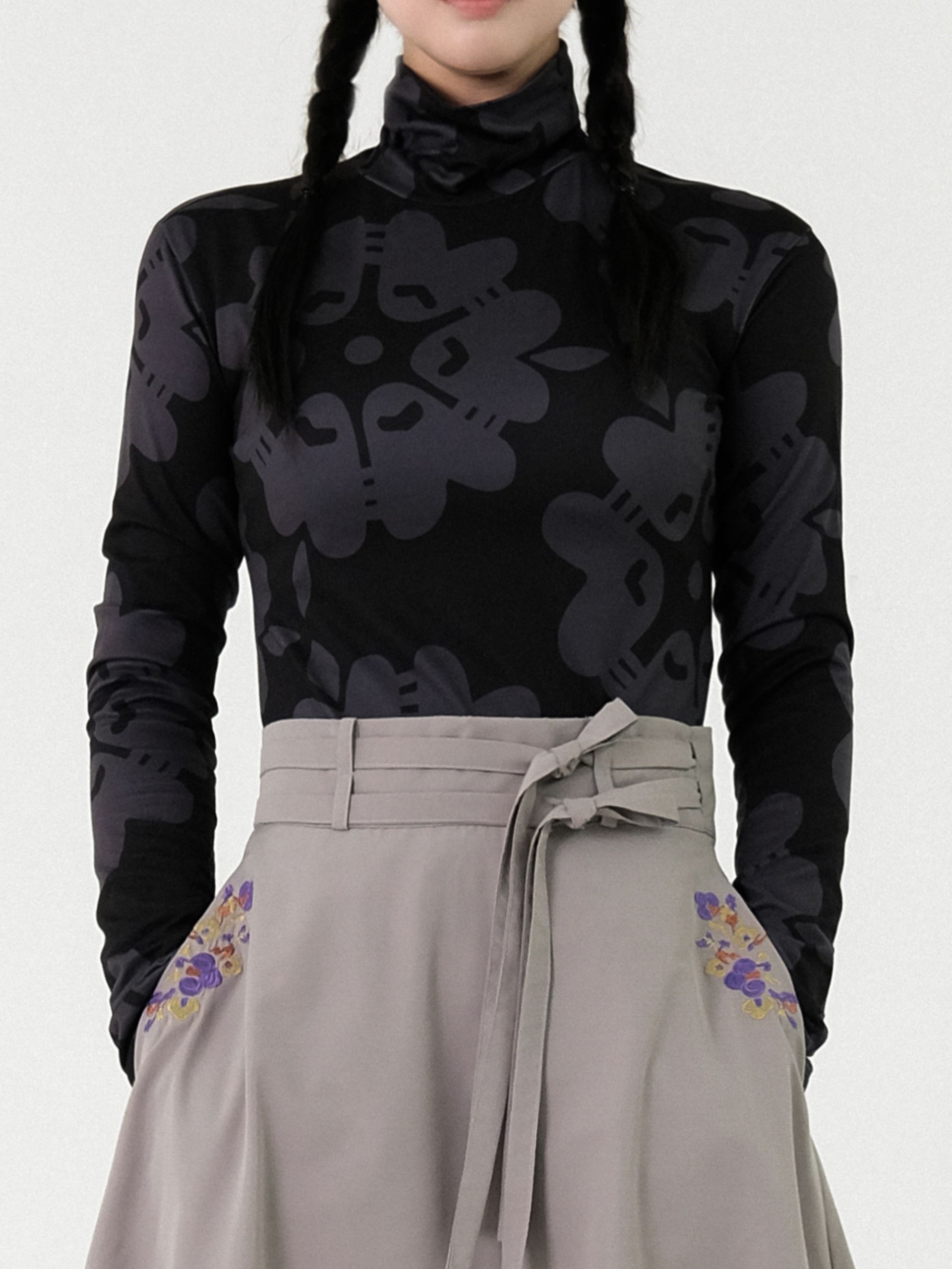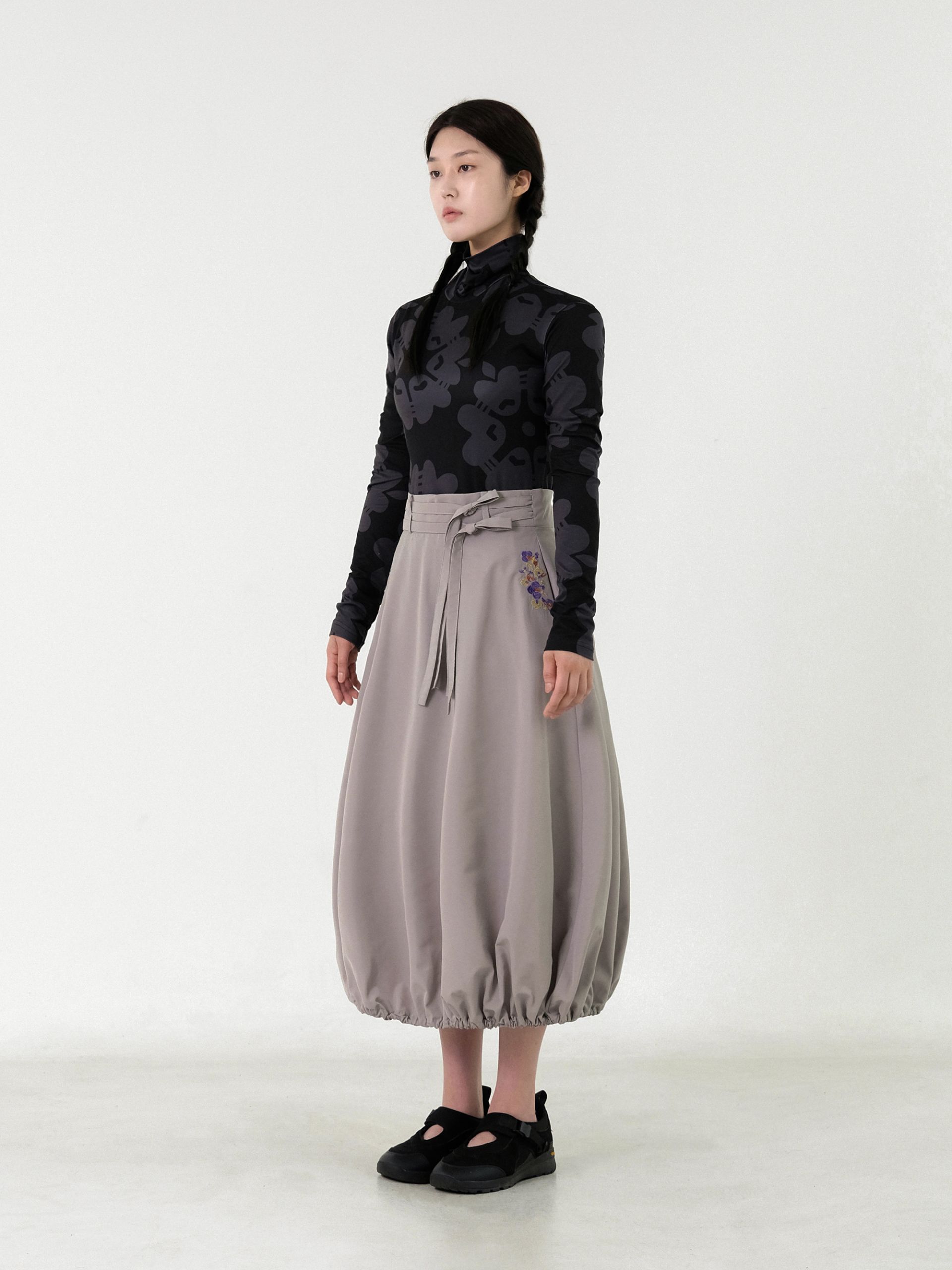 - 오우르 [불로초] 패턴을 자수로 담아낸 항아리 형태의 랩 스커트입니다.