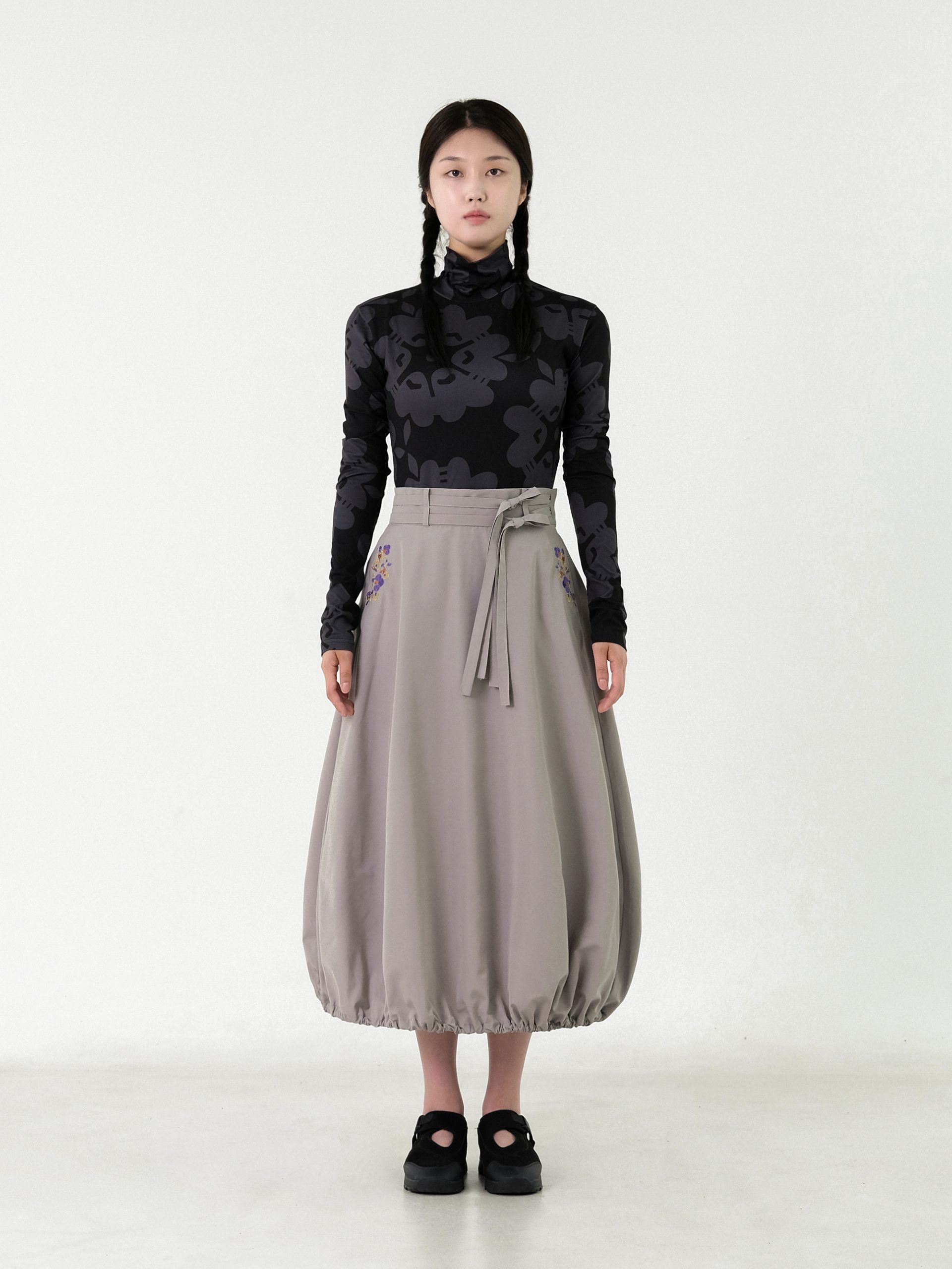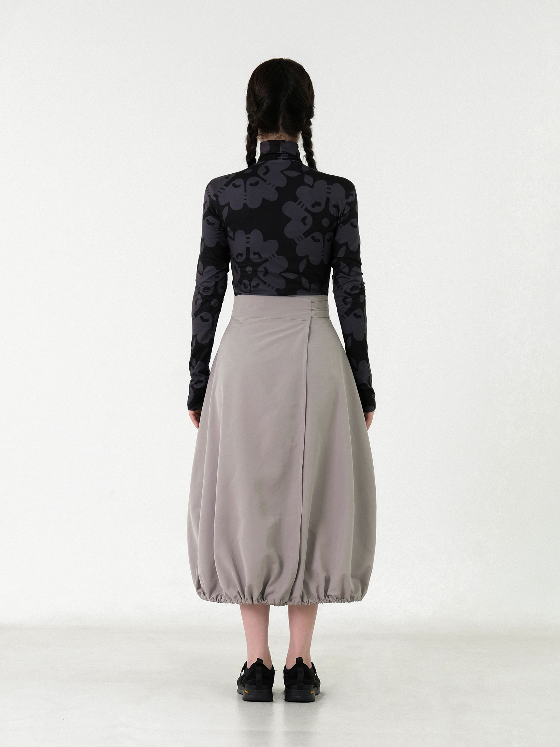 - 볼륨 디테일이 포인트인 스커트로 밑단 쪽에 잡힌 셔링을 이용해 감각적이고 유니크한 아웃핏의 연출이 가능합니다.