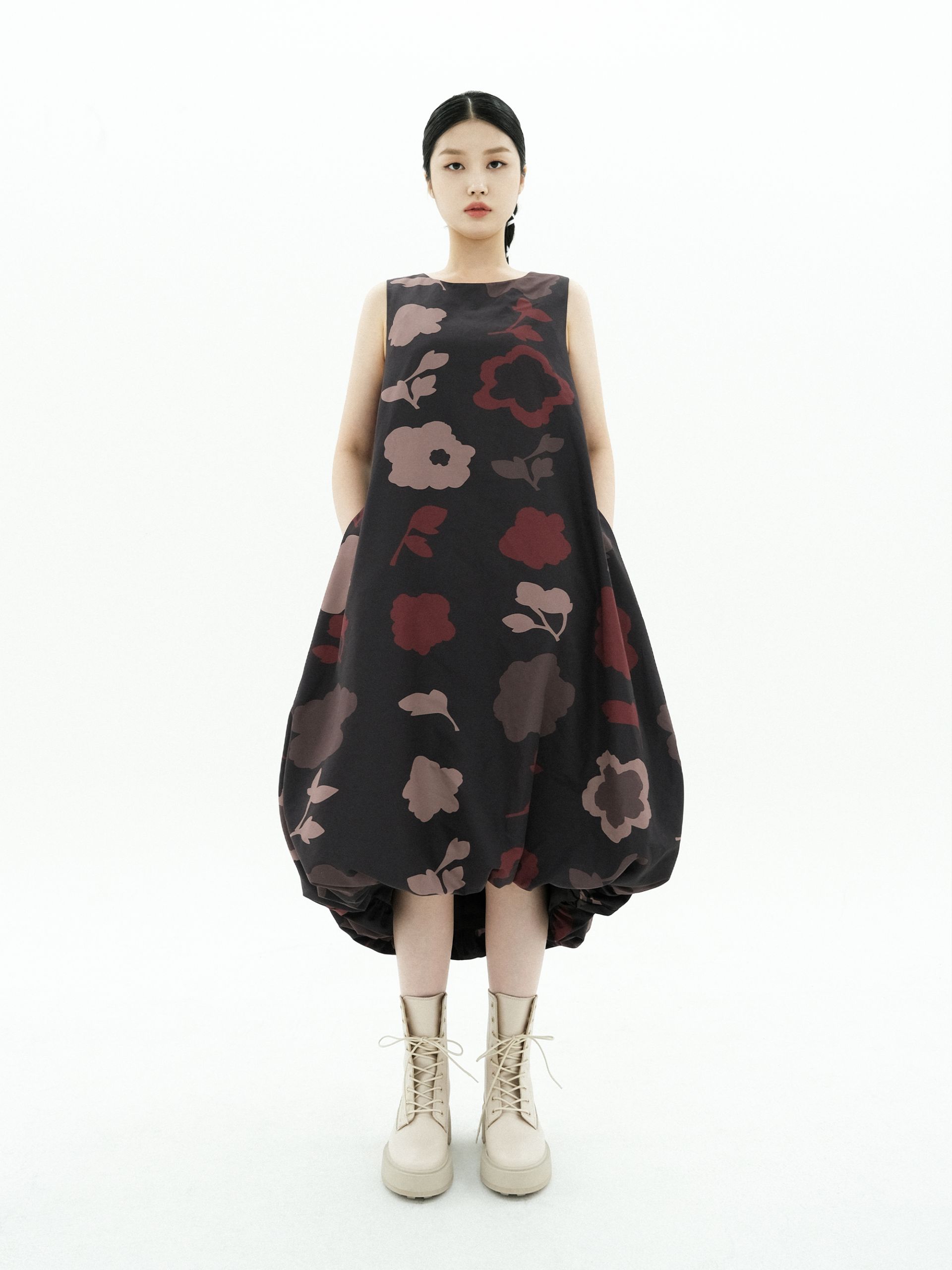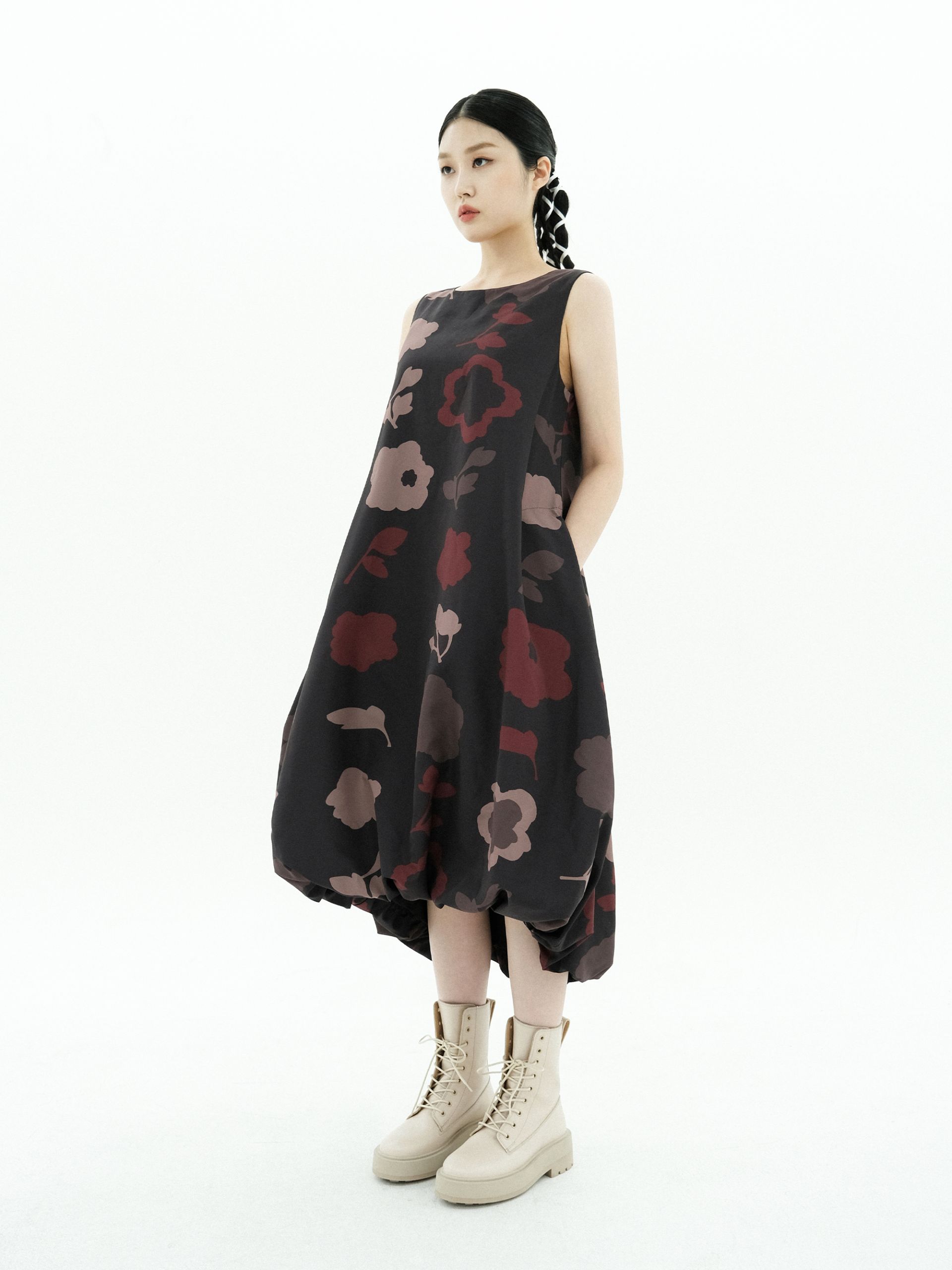 - 오우르 P9 데인티모란 패턴을 담은 항아리 형태의 언발란스 맥시 드레스입니다.