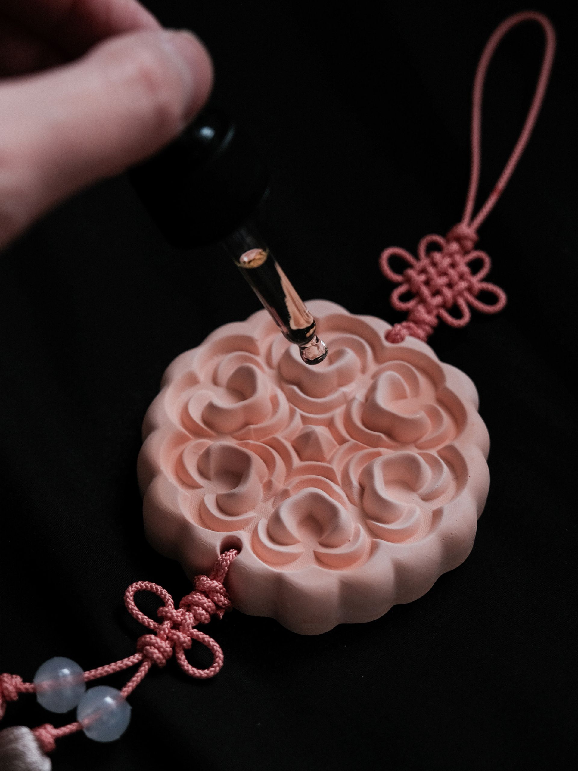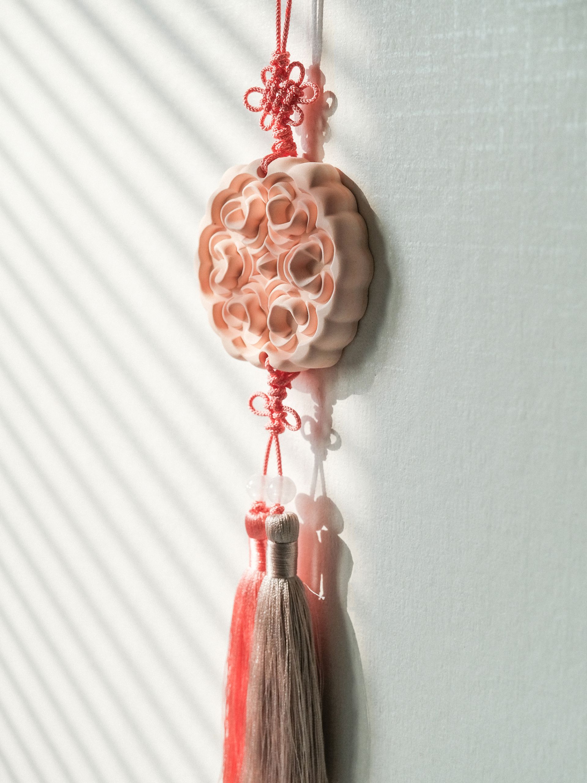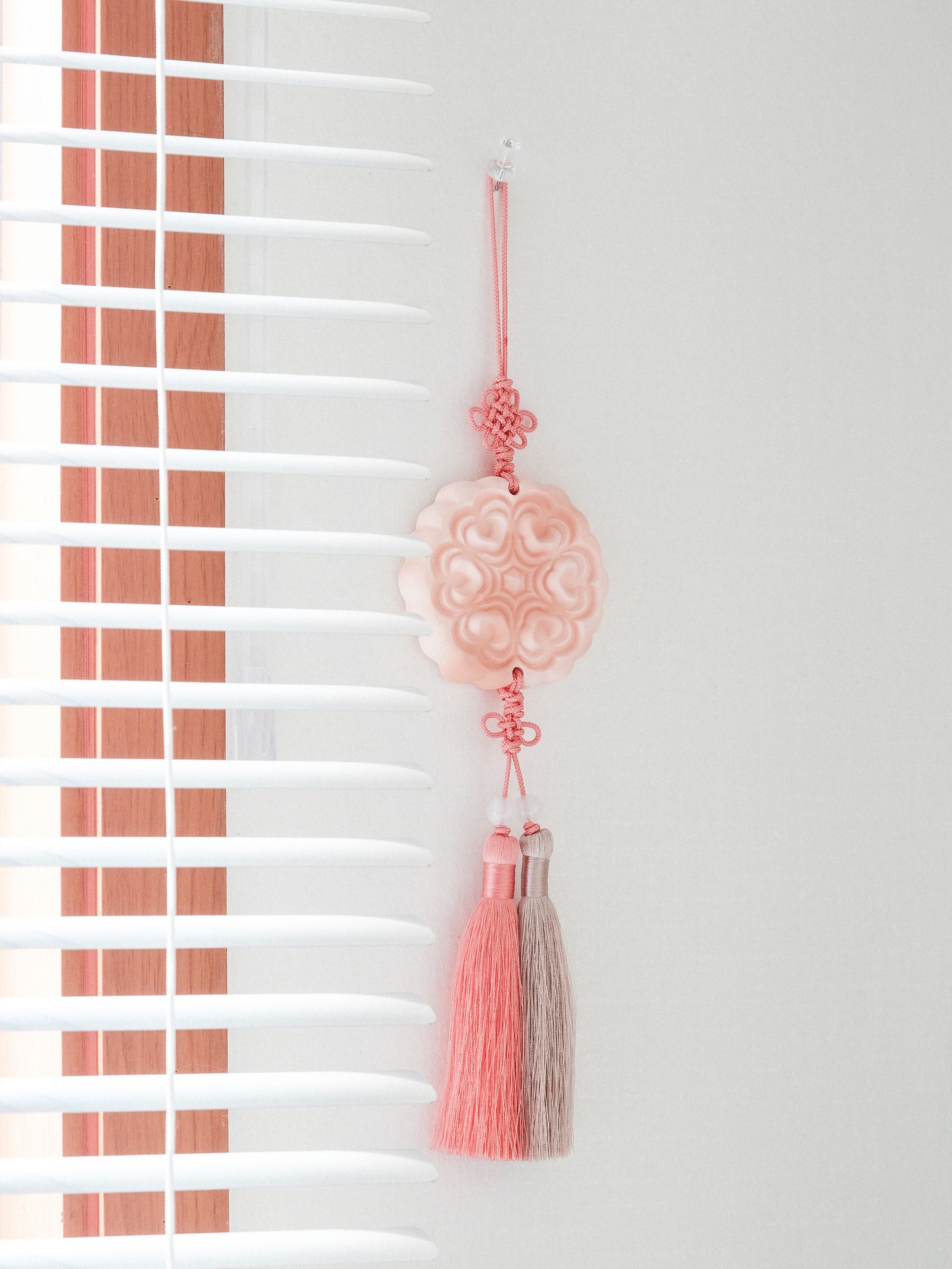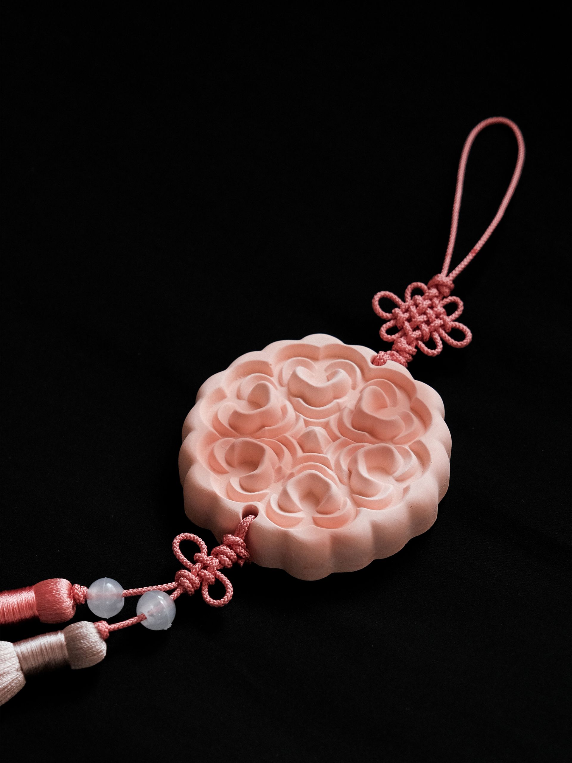 - 산호장식 노리개 모양을 닮은 구름꽃 모티브 석고방향제로 석고 표면에 산호 보석 질감의 마블링이 첨가된 제품입니다.